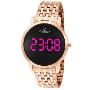 Características Formato do Relógio: Redondo Composição do Vidro: Cristal Mineral Material da Caixa: Aço Inox Cor da Caixa: Rosê Cor do mostrador: Digital, LED roxo Material da Pulseira: Aço Inox Cor da Pulseira: Rosê Mecanismo: Analógico Quartz