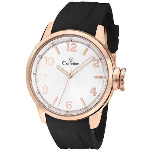 Relógio Champion Feminino Ref: Cn29758s Esportivo Rosé DESCRIÇÃO DO PRODUTO: Caixa Em Metal Pulseira Em Silicone Preto Vidro de Cristal Mineral Fundo Rosqueado Resistente à Água 5 Atm Diâmetro / Largura da Caixa: 44.00 MM Funções: Analógico Mostrador Prateado com Números e Detalhes em Rosé Alimentação do Maquinário Bateria de 1 Ano Marca: Não Informado