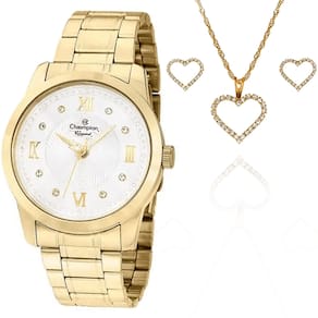 Características Formato do Relógio: Redondo Composição do Vidro: Cristal mineral Material da Caixa: Aço Inox Cor da Caixa: Dourado Cor do mostrador: Branco Material da Pulseira: Aço Inox Cor da Pulseira: Dourado Mecanismo: Analógico Quartz