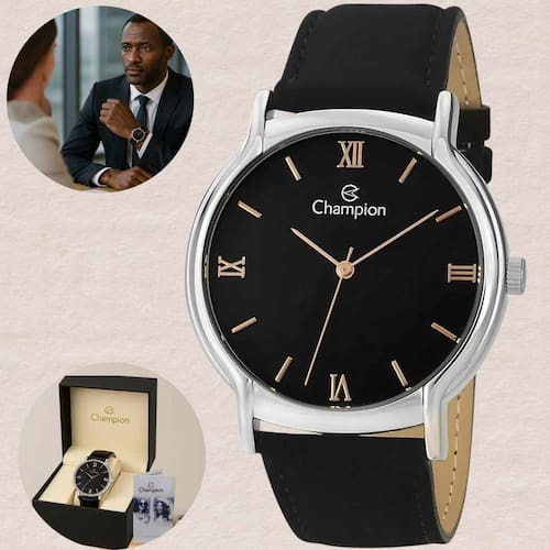 O Relógio Champion Masculino CN20006T é a combinação perfeita de estilo e versatilidade. Sua caixa prateada de 4,2 cm valoriza o mostrador clássico, protegido por vidro de cristal mineral que oferece maior resistência contra riscos. A pulseira em couro preto proporciona conforto e sofisticação, tornando-o ideal para ocasiões sociais e momentos casuais. Equipado com mecanismo quartz confiável, é a escolha certa para quem deseja pontualidade e presença marcante em qualquer situação.