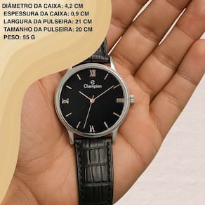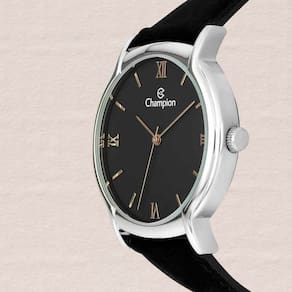 Ficha Técnica Marca: Champion Modelo: CN20006T Gênero: Masculino Formato da Caixa: Redondo Tipo de mostrador: Analógico Material da Caixa: Metal Cor da Caixa: Prata Cor do mostrador: Preto Material do Vidro: Cristal Mineral Material da Pulseira: Couro Cor da Pulseira: Preto Estilo: Social / Casual Fecho: Fivela tradicional