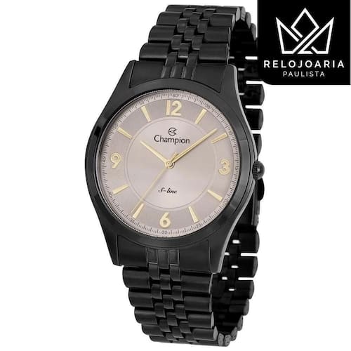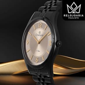 Relógio Champion Masculino Preto Slim CN21121C Relógio Champion masculino, preto, redondo, da linha S-line. Caixa slim, mais fina e visual mais leve. Visor cinza com detalhes dourados. Tem nível de resistência à água em 30M/3ATM. Tamanho médio 4 cm . Champion S-line CN21121C Analógico Movimento: Quartz Gênero: Masculino Visor: Cinza Vidro: Cristal Mineral Diâmetro da caixa: 40 mm Altura da caixa: 7 mm Pressão: 30 M Fundo: Pressão Peso: 89 g Característica: Caixa e pulseira em aço com banho preto. Fecho dobrável com dois botões. Função: Calendário data : 1 ano Acompanha caixa da marca, manual de instruções e certificado de .