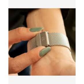 Qualidade em Aço Inoxidável: A pulseira em aço prateado é resistente, confortável e possui fecho gancho com trava de segurança, garantindo ajuste perfeito e tranquilidade no uso.
