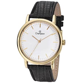 Características Formato do Relógio: Redondo Composição do Vidro: Cristal mineral Material da Caixa: Metal Cor da Caixa: Dourado Cor do mostrador: Prata Material da Pulseira: Couro Cor da Pulseira: Preto Mecanismo: Analógico Quartz