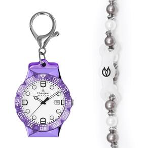 - Gancho para pendrar o relógio onde quiser (com base lilás metálico)