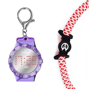 - Gancho para pendrar o relógio onde quiser (com base lilás metálico)