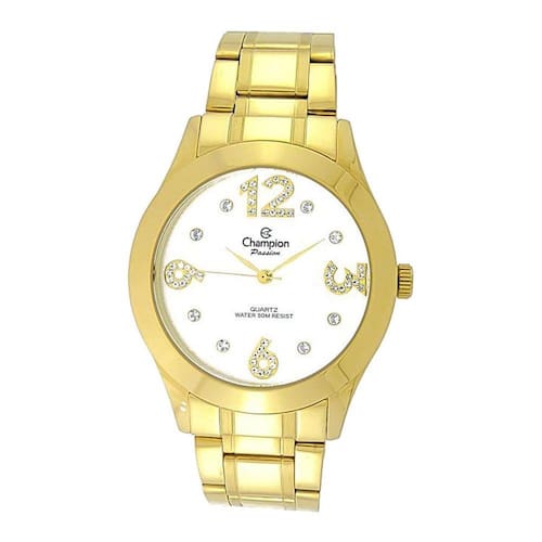 Relógio Champion Feminino Passion CN29178H. Sistema Analógico, Resistente à Água 50M, Vidro Em Cristal, Caixa e Pulseira Em Aço na Cor Dourado, Mostrador Branco com Detalhes Dourados e Strass. Acompanha Nota Fiscal, Manual e Certificado de Garantia de Um Ano do Fabricante.