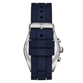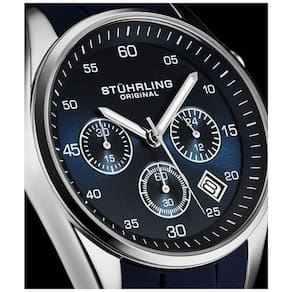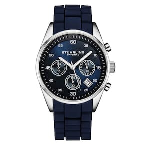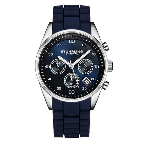 Relógio Chronograph 42mm, Mostrador Azul e Prata, Pulseira de Silicone Azul, Stuhrling.
