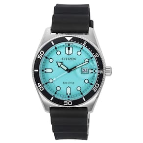 Relógio masculino Citizen Eco-Drive com pulseira de borracha com mostrador turquesa AW1760-14X 100M