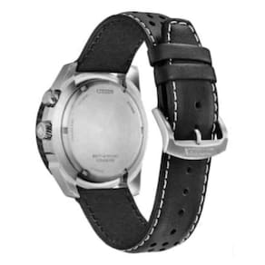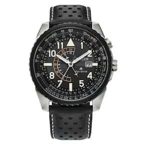 Caixa de aço inoxidável em tom de prata com pulseira de couro preto.Pilotos que giram o anel de corrediça preto moldura de aço inoxidável. Mostrador preto com ponteiro prateado, algarismo arábico e marcadores de horas. Tipo de discagem: analógico. Ponteiros e marcadores luminescentes. Data exibida na posição das 3 horas. Movimento de quartzo citizen caliber eco-drive b877. Cristal mineral resistente a riscos. Aparafuse a coroa. Caso sólido de volta. Forma redonda da caixa, tamanho da caixa: 42 mm, espessura da caixa: 12 mm. Largura da banda: 24 mm. Fecho de fivela. Resistente à água a 200 metros / 660 pés. Funções: data, gmt, segundo fuso horário, hora, minuto, segundo, energia solar. Estilo de relógio de esporte. Gravadora de relógio: japan movt. Relógio citizen air black promaster nighthawk eco-drive black dial para homens bj7137-07e.
