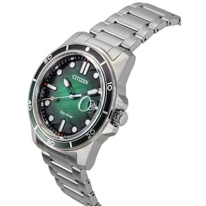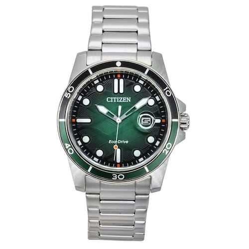 Relógio masculino Citizen Marine Eco-Drive em aço inoxidável com mostrador verde AW1811-82X 100M