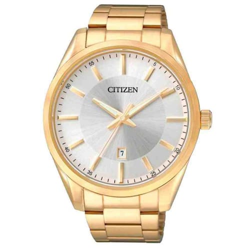 Relógio Citizen Masculino Ref: Tz20402H Relógio Masculino TZ20402H com Calendário. Tem sua caixa e pulseira em aço inoxidável dourado, visor em cristal mineral com mostrador prata. A caixa tem aproximadamente 42 mm de diâmetro e 10 mm de espessura. Pesa 119 g e tem resistência à água de 5 ATM 50 metros . Relógio ógico com mecanismo de quartzo alimentado à bateria. Especificações Gênero Masculino 12 Meses Funções Calendário Material da Pulseira Aço Inox Mecanismo ógico Resistência à Água ATM 10 Resistente à Água - 100M Tipo de Energia Bateria Acompanha Certificado de , Embalagem , Manual de Instrução, Comprimento do Relógio 21,0cm Aprox Espessura da Caixa 1,0cm Aprox Largura da Caixa 4,5cm Aprox Material da Caixa Aço Inox Mostrador Branco Com Detalhes Em Dourado Vidro Cristal Mineral Medidas Relógio Sim Marca Citizen Marca: Não Informado Ean: 7891511332529