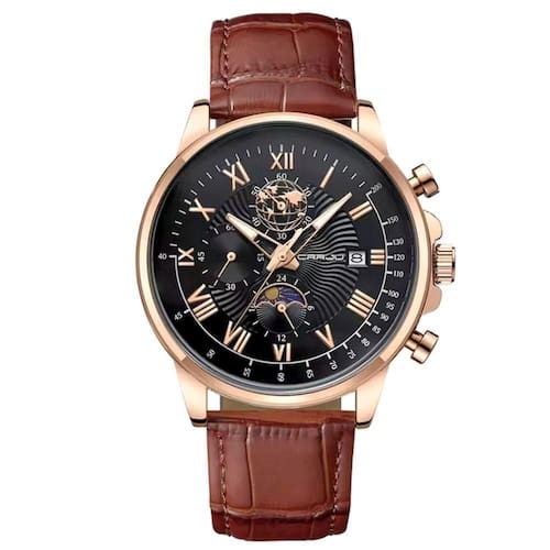 Combine sofisticação e ousadia com este elegante relógio masculino clássico, projetado para impressionar com seu estilo atemporal e detalhes sofisticados. Ideal para o homem moderno que aprecia um toque de distinção em seu acessório diário.