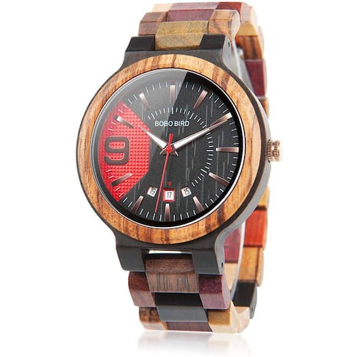 Materiais mistos preciosos: feitos de ébano, sândalo, madeira zebra, bordo, relógio de madeira l, textura de madeira pura, técnicas requintadas de polimento, leves, suaves e confortáveis, relógios de madeira l verdadeiramente artesanais não perdem. Aparência de mostrador de madeira única: Design irregular de exibição de data interna em um grande mostrador facial, com exibição vermelha atraente às 9 horas e mãos luminosas, tornam o relógio de madeira de quartzo analógico fácil de ler, conveniente para uso diário, mesmo na noite escura. Banda de relógio multicolorido ajustável: embalando com botão de aperto oculto apertando fecho e ferramenta de remoção, você pode fácil ajustar o comprimento para se adequar ao seu pulso, e a faixa de bits de madeira multicolorida torna seu relógio de pulso particularmente atraente para usar. Vários estilos de relógio de pulso de madeira: uma coleção de relógios casuais clássicos, vintage e modernos, populares entre colecionadores e jovens, adequados para muitas ocasiões. Ótimos presentes: prepare um relógio de madeira colorido legal para pai, amante, namorado, marido, filho ou parente no Dia dos Pais, Dia dos Namorados, Natal, Ação de Graças, Halloween, Aniversário, Aniversário, Casamento, etc.