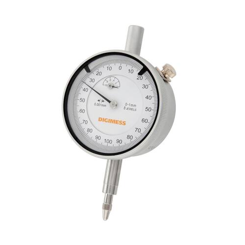 Relógios Comparador 1x0,001mm Digimess 121.320 Caixa metálica com acabamento cromado fosco, com alta resistência a impactos Aro de alumínio recartilhado anodizado Ponta de contato esférica Ø2,5mm em aço temperado Mecanismo de funcionamento super resistente, fabricado com peças metálicas Engrenagens montadas sobre mancais de rubi Canhão com Ø8mm Pontas de contato para reposição: Esférica em aço Plana em aço Acessório opcional: Dispositivo para fixação em traçadores de altura Marca: Não Informado Ean: 7899953344674