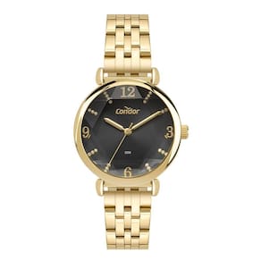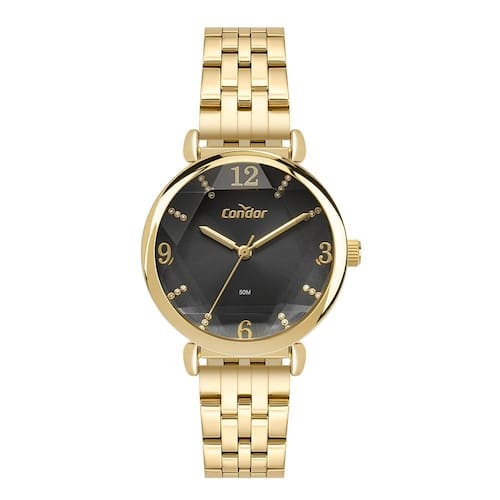 Relógio Condor Feminino Dourado com Mostrador Preto e Cristais - 33mm O relógio Condor CO2035NJQ/4P é a combinação ideal de elegância e personalidade. Seu design refinado conta com uma pulseira dourada em aço e mostrador preto com acabamento raio de sol, trazendo sofisticação para qualquer ocasião. O destaque do modelo está nos detalhes em cristais aplicados no mostrador, que conferem um toque de brilho e feminilidade. A caixa metálica de 33mm garante um visual delicado, enquanto a pulseira com elos duplos proporciona conforto e durabilidade. Resistente à água até 50 metros, este relógio é perfeito tanto para o uso diário quanto para eventos que pedem um acessório mais elegante. Especificações Técnicas: Marca: Condor Modelo: CO2035NJQ/4P Gênero: Feminino Tamanho da Caixa: 33 mm Material da Caixa: Metal Material da Pulseira: Aço Cor da Caixa: Dourada Cor da Pulseira: Dourada Cor do Mostrador: Preto com cristais Tipo de Vidro: Cristal Mineral Resistência à Água: 5 ATM (50 metros) Mecanismo: Analógico Alimentação: Bateria Conteúdo da Embalagem: 1 Relógio Condor Feminino Manual de instruções Certificado de garantia Estojo da marca Garantia: 1 ano contra defeitos de fabricação (fornecida pelo fabricante)