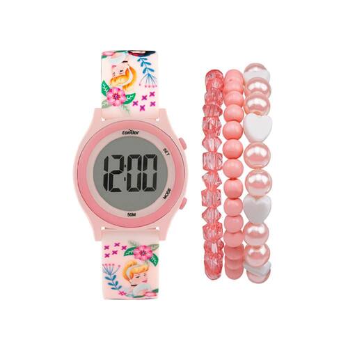Pulseira de Silicone Rosa Clara Estampada com personagens Princesas da Disney