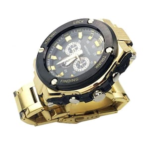 Produzido com material resistente, na cor dourada com detalhes em preto, é um relógio com aparência super moderna.