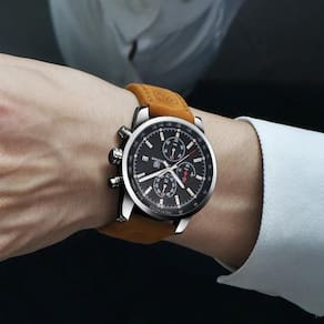 Com pulseira de couro e um visor robusto de Hardlex, este relógio é a escolha ideal para quem valoriza um design refinado e resistente. Seja para completar o visual cotidiano ou marcar presença em um evento, este relógio de luxo estabelecerá um novo padrão de moda masculina. Deixe-se envolver pela confiança que apenas um verdadeiro relógio de hora pode proporcionar.