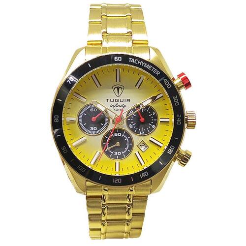 Relógio Cronógrafo Masculino de Aço Tuguir ógico 23-2231 Dourado e Preto Relógio Cronógrafo Masculino de Aço Tuguir ógico 23-2231 Dourado e Preto Marca: Tuguir Categoria: ógico ógico: Sim 1 Horário Ponteiros Fluorescentes: Sim Digital: Não Cronômetro: Sim Luz: Selecione Resistente à Água: 5 ATM Pode ser para nadar no raso, por pouco tempo submerso - Respingos: Sim - Chuva: Sim - Lavar Carro: Sim - Lavar Louça: Sim - Natação: Sim - Mergulho: Não Característica do Vidro: Cristal Mineral Tipo de Fecho: Dobrável com Botão Cor da Caixa: Dourado Material da Caixa: Aço Formato da Caixa: Redondo Diâmetro da Caixa: 41,00 mm Espessura da Caixa: 11,00 mm Cor da Pulseira: Dourado Material da Pulseira: Aço Largura da Pulseira: 17,50 mm Comprimento Máximo da Pulseira: 270,00 mm Alimentação: Bateria Interna Peso Líquido: 0,120 Kg Modelo: 23-2231 Cor Predominante: Dourado Cor Diferencial: Preto : 12 Meses Conteúdo da Embalagem: 01 Relógio 01 Embalagem 01 Termo de Marca: Não Informado