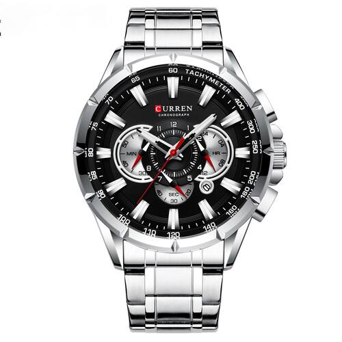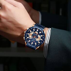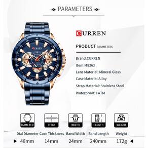 Relógio masculino Curren8363 Relógio de quartzo de seis pinos Marca: Curren/Karren Característica especial: calendário Função especial: pequena de três agulhas Características especiais: 24 horas de instrução Público adequado: masculino Estilo: comercial Impermeável: pode ser à prova d'água Desempenho: 30 M Material: liga leve Diâmetro do mostrador: 4,8 cm Espessura do mostrador: 1,4 cm Comprimento da pulseira: 2,4 cm Peso do relógio: 172 g Tipo de fivela: dobrável em uma única linha fivela Tipo de tela: seis mãos Atenção: resistente à água, não pode ser para nadar, tomar banho, mergulhar na água e operar subaquática, pode resistir à garoa, pequena respingos, a fim de prolongar a vida útil da mesa, para evitar o contato com substâncias corrosivas.