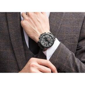 A pulseira de couro tem um comprimento de 23 cm e uma largura de 24 mm, proporcionando conforto e ajuste perfeito no pulso. O estilo casual e esportivo torna este relógio versátil para uso em diferentes ocasiões.