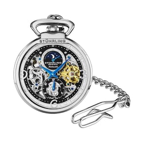 Traga de volta um visual clássico com o Modena Automatic Skeleton. Elegante e atemporal, o relógio de bolso Modena tem fundo de caixa e corrente de exposição, por isso certamente iniciará uma conversa, não importa onde você esteja. Este relógio também possui hora dupla, movimento automático e um suporte de relógio, para que você esteja no topo de tudo em qualquer ambiente.