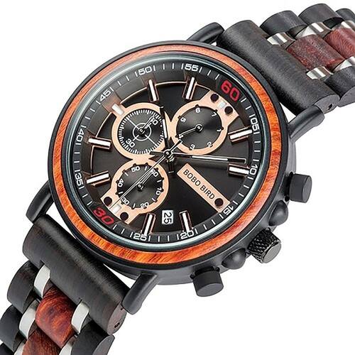 - **Pulseira**: A pulseira de madeira proporciona conforto e um ajuste firme, geralmente acompanhada por um fecho de aço inoxidável para segurança.