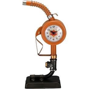 RELÓGIO DE MESA DECORATIVO Altura: 35,8 cm Largura: 14,7 cm Profundidade: 8 cm Peso: 0,63 Kg Diâmetro do Corpo: 12 cm Material: Metal Cor: Laranja