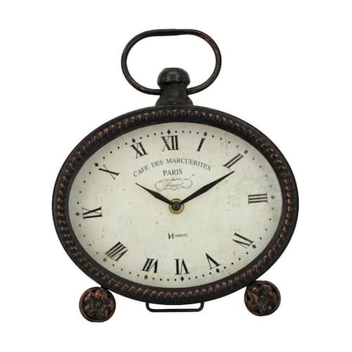 Relógio De Mesa Herweg Ouro Envelhecido 6396 único Relógio de Mesa Herweg Ouro Envelhecido 6396 único - Características Gerais do Produto: - Alimentação: Pilha AA ( não inclusa) - Funcionalidade: Mecanismo Step ( Tic Tac ); Produto nacional - Material: Metal pintado - Medidas: A: 21 x L: 26 x P: 5cm - Observações: Inclui suporte para pendurar ou pés para apoiar na mesa; Botões de regulagem na parte traseira - Modelo referência do produto: 6396-245 Acompanha o produto: - 01 Relógio Herweg Garantia: - 12 Meses de Garantia de Fábrica