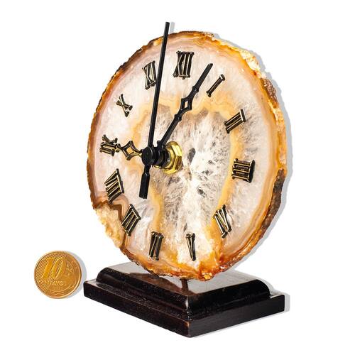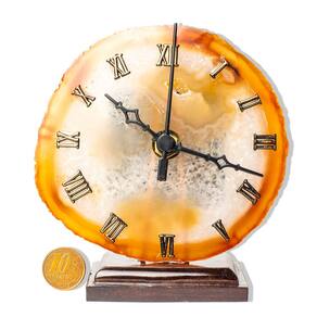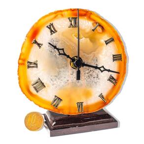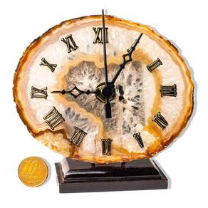 Relógio de Mesa em Chapa de Ágata Natural – Sofisticação Atemporal com a Beleza da Terra Dê um novo significado ao tempo com este Relógio de Mesa feito em Ágata Natural. Mais que um marcador de horas, é uma peça de decoração única que combina o requinte das pedras naturais com a funcionalidade do design moderno. Cada relógio é exclusivo — lapidado diretamente da natureza, trazendo tons, formas e desenhos únicos, impossíveis de replicar. DETALHES DA PEÇA: NOME DA PEDRA: Ágata NaturalCOR: Tons Naturais Terrosos (vide foto real do produto)CORTE: Chapa Lapidada com Excelente BrilhoCLARIDADE: Opaca com reflexos sutisMEDIDAS DA PEDRA: Aproximadamente 10 a 13 cmPESO APROXIMADO: 180 a 250g (pode variar levemente)ORIGEM: Sul do Brasil MECANISMO DO RELÓGIO: Analógico silencioso com ponteiros metálicosALIMENTAÇÃO: 1 pilha AAA (não inclusa)BASE: Apoio discreto de madeira e estável para uso em mesas, estantes ou aparadores UM TOQUE DE NATUREZA NO SEU TEMPO Transforme seu ambiente com a presença imponente da Ágata, uma pedra conhecida por suas propriedades de equilíbrio e proteção. As linhas orgânicas da pedra revelam desenhos únicos, enquanto o brilho lapidado valoriza o visual rústico com um acabamento sofisticado. Ideal para: Salas de estarEscritórios ou consultóriosPresentes especiais com significadoDecoração de ambientes com estilo natural ou contemporâneo OBSERVAÇÕES: • Peça de referencia – a foto é ilustrativa da pedra que receberá• Pequenas variações de cor podem ocorrer devido à iluminação de estúdio, sem comprometer a beleza ou o valor da peça• Produto artesanal O TEMPO COM MAIS SIGNIFICADO Adicione um elemento de luxo natural à sua rotina.Adquira seu Relógio de Mesa em Ágata Natural e leve para o seu espaço a beleza atemporal da natureza — onde cada segundo é marcado com estilo e autenticidade. Marca: Não Informado