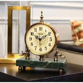 Características principais: Design: O relógio possui um formato redondo clássico, com uma base robusta de mármore que confere estabilidade e um toque de luxo.