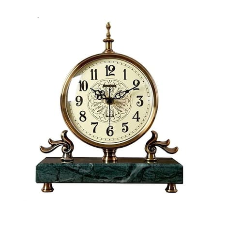 Relógio De Mesa Redondo Base Mármore Cor Cobre