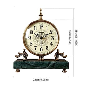 O Relógio de Mesa Redondo com Base de Mármore e Detalhes de Pássaros na Cor Cobre é uma peça decorativa que combina elegância e sofisticação. Aqui está uma descrição detalhada:
