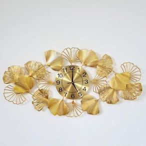 Relógio de parede 3d design europeu metal folhas 90x46 Uma coleção luxuosa de relógios em metal dourado