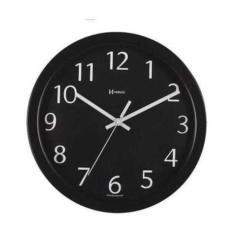 Relógio De Parede Alumínio Preto Herweg 6719 único Relógio de Parede Alumínio Preto Herweg 6719 único - Características Gerais do Produto: - Alimentação: Pilha AA ( não inclusa) - Funcionalidade: Mecanismo Step ( Tic Tac ) - Material: Visor de Vidro; Alumínio pintado; Ponteiros em alumínio; Mostrador em papel estampado - Medidas: A: 30,0 x L: 30,0 x P: 4cm - Observações: Inclui suporte para pendurar; Botões de regulagem na parte traseira - Modelo referência do produto: 6719-034 Garantia: - 12 Meses de Garantia de Fábrica