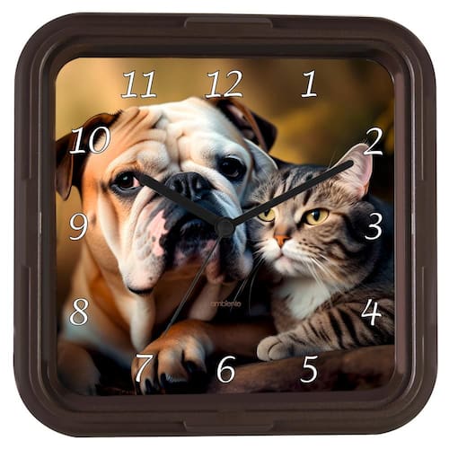 Mostrador: com números brancos e imagem de cão e gato