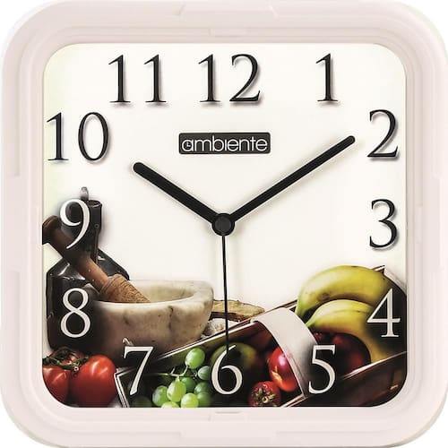 Relógio De Parede Ambiente Ref: 1910-141 Branco Frutas DESCRIÇÃO DO PRODUTO: Medidas: 22,6A 22,6L x 4E cm