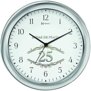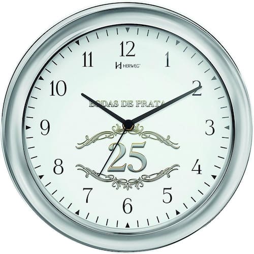 Relógio De Parede Bodas De Prata 28cm Herweg 6636 Prata Relógio De Parede Bodas De Prata 28cm Herweg 6636 Prata - Relógio De Parede Bodas De Prata 28cm Herweg 6636 Relógio de Parede - 6636 Estilo: Decorativo Medidas: 28x28x3 cm Características Técnicas: Disponível na linha promocional Usa pilha AA Produto Nacional Mecanismo Step Cores Disponíveis: Cromado Informações sobre o produto Relógio de parede Base de Plástico Metalizado Visor de acrílico Botões de regulagem na parte traseira do produto Usa 1 pilha AA 1,5V que não acompanha o produto