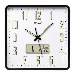 Material: Material da concha: plástico Material do espelho: vidro Material do mostrador: PVC Tamanho: 35 × 35 CM Peso: 1430 g Design moderno: apresenta uma forma quadrada elegante com uma face branca limpa e uma tela de calendário digital, oferecendo uma adição elegante e funcional a qualquer ambiente. Silencioso e sem tique-taque: o movimento de quartzo garante uma experiência silenciosa e sem tique-taque, perfeita para quartos, escritórios ou qualquer espaço silencioso. Funcionalidade dupla: inclui exibição de hora e data, oferecendo maior comodidade e ajudando você a se manter organizado. Números fáceis de ler: números pretos em negrito com detalhes que brilham no escuro para facilitar a leitura, mesmo com pouca luz. Construção durável: feita de materiais de PVC, vidro e plástico de alta qualidade para durabilidade duradoura e uma aparência elegante e moderna.