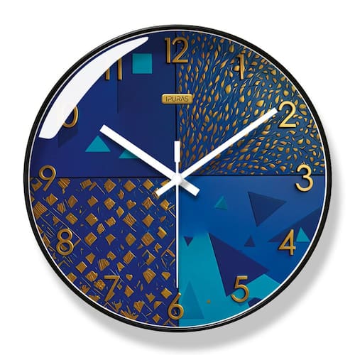 Material: Material da concha: plástico Material do espelho: vidro Material do mostrador: PVC Tamanho: 30 × 30 cm Peso: 1200 Design artístico: apresenta um impressionante padrão geométrico art déco com detalhes ousados em ouro e azul, adicionando um toque contemporâneo e elegante a qualquer espaço. Silencioso e sem tique-taque: o movimento silencioso de quartzo garante um ambiente tranquilo sem sons de tique-taque perturbadores, ideal para quartos, salas de estar ou escritórios. Materiais de alta qualidade: feitos com um mostrador de PVC durável, acabamento em espelho de vidro e moldura de plástico para uma aparência elegante e moderna. Tamanho perfeito: com 30 cm de diâmetro, este relógio atraente se encaixa perfeitamente em qualquer ambiente, combinando funcionalidade com apelo estético. Fácil de instalar: operado por bateria para configuração sem complicações e baixa manutenção. Requer uma pilha AA (não incluída).