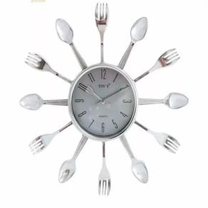 Relógio de Parede Cromado - Design de Talheres (Garfo e Colher)