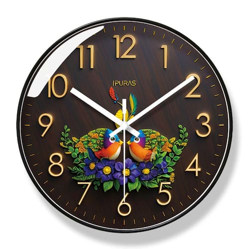 Material: Material da concha: plástico Material do espelho: vidro Material do mostrador: PVC Tamanho: 30 × 30 cm Peso: 1220 g Belo design floral e de pássaros: apresenta pássaros coloridos e flores vibrantes em estilo nórdico, adicionando um toque animado e artístico a qualquer ambiente. Silencioso e sem tique-taque: o movimento silencioso e sem tique-taque garante um ambiente tranquilo, perfeito para quartos, escritórios ou salas de estar. Construção durável: feito com caixa de plástico de alta qualidade, espelho de vidro e mostrador de PVC, este relógio é resistente e elegante. Números fáceis de ler: números dourados em negrito em um fundo de madeira escura garantem uma visibilidade clara, facilitando a contagem do tempo. Ideal para espaços modernos: este relógio artístico e elegante complementa a decoração contemporânea, minimalista ou inspirada na natureza, aprimorando qualquer casa ou escritório.