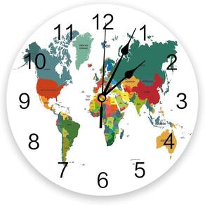 Material: Material da concha: madeira Material do espelho: madeira Material do mostrador: madeira Tamanho: 30 × 30 cm Peso: 400 g Design exclusivo: apresenta um mapa-múndi colorido com números claros e fáceis de ler, perfeito para adicionar um toque global a qualquer ambiente. Silencioso e sem tique-taque: desfrute de uma atmosfera tranquila e pacífica com o mecanismo antitique-taque, ideal para salas de estar, quartos ou escritórios. Durável e moderno: feito com uma estrutura de madeira resistente, mostrador de madeira e acabamento espelhado para uma aparência elegante e moderna. Tamanho perfeito: Medindo 30 cm de diâmetro, este relógio é o complemento perfeito para qualquer espaço doméstico ou de escritório, oferecendo beleza e funcionalidade. Fácil de instalar: operado por bateria para configuração sem complicações e manutenção mínima. Requer uma pilha AA (não incluída).