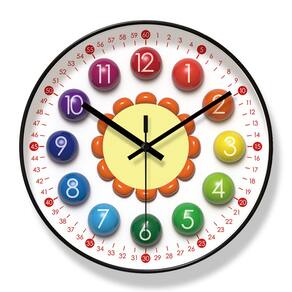Material: Material da concha: plástico Material do espelho: vidro Material do mostrador: PVC Tamanho: 30 × 30 cm Peso: 1220 g Silencioso e sem tique-taque: com um movimento de quartzo silencioso e sem tique-taque, este relógio garante um ambiente tranquilo, tornando-o perfeito para quartos, salas de estar ou quartos infantis. Design divertido e colorido: o design vibrante inspirado em flores do relógio com números coloridos dá um toque divertido e alegre a qualquer ambiente. Números fáceis de ler: números em negrito e coloridos simplificam a contagem das horas em um piscar de olhos, tornando este relógio funcional e decorativo. Durável e leve: feito com uma caixa de plástico, espelho de vidro e mostrador de PVC, este relógio é leve, resistente e fácil de pendurar em qualquer parede. Operado por bateria: alimentado por uma única bateria AA (não incluída), este relógio oferece manutenção e conveniência sem complicações.