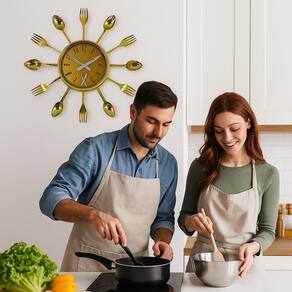 Relógio de Parede - Design de Talheres (Garfo e Colher) Leve sofisticação e estilo à sua cozinha com este exclusivo relógio de parede, perfeito para quem valoriza detalhes e funcionalidade. Inspirado no universo gastronômico, ele combina charme e praticidade, tornando-se um item indispensável para amantes da boa culinária e decoração moderna.