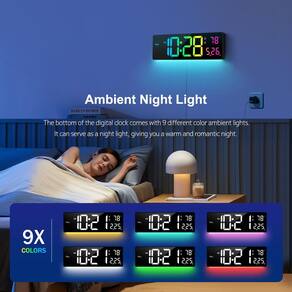 Relógio de parede digital grande de 40,6 cm, relógio digital com 11 cores RGB que mudam de controle remoto, relógios de LED com luzes noturnas para sala de estar, quarto, escritório, sala de aula, horário de verão, relógio digital de temperatura, despertadores, relógios digitais, relógio de LED, visor grande, idosos, demência, data, semana, temperatura, mesa, mesa, sala de estar, quarto, escritório, academia, loja, garagem, cozinha, banheiro, quinta, prateleira, sala de aula, berçário, eletrônico - ?Converte 11 cores livremente?Tela grande LED de alta definição de 40.6 cm, o relógio de parede digital pode mudar 11 cores de dígitos jumbo com controle remoto. Você pode ler o relógio de parede claramente, mesmo à distância ou canto. Atenção: deve ser conectado para funcionar. Não funciona com bateria. - ?Luz noturna ambiente?A parte inferior do despertador vem com 9 luzes ambiente de cores diferentes. Pode servir como uma luz noturna, dando a você uma noite quente e romântica. É uma obra de arte simples e elegante que decora seu quarto. - ?Regulador de brilho automático de 10 níveis?Com tela de brilho ajustável de 10 níveis, você pode ajustar facilmente a um brilho confortável manualmente pelo controle remoto. O relógio LED tem um sensor de escurecimento automático embutido, que também pode ajustar automaticamente o brilho conforme a luz muda, inteligente para fornecer as necessidades. - ?Função de memória?Há uma função de memória embutida, mesmo se a energia for desconectada, os dados de tempo não serão perdidos, não é necessário redefinir. E este relógio de parede grande tem uma função de contagem ou contagem regressiva (até 99 minutos e 99 segundos). - ?Controle remoto?Todas as configurações e operações do relógio de parede grande não precisam ser removidas, mas podem ser facilmente feitas com o controle remoto. Observação: Se você não encontrar o controle remoto e o cabo USB, certifique-se de abrir a outra extremidade da caixa para verificar. - ?Bonito e funcional?Este relógio de parede é adequado para sala de estar, cozinha, garagem, casa de fazenda, escritório, armazém, sala de aula, academia, loja, berçário. E também é o melhor presente para amigos, parceiros e idosos. Atenção: Ele precisa ser conectado para funcionar. A bateria só funciona para armazenar a configuração do relógio em caso de falta de energia principal.