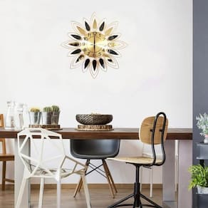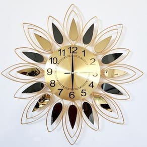 Relógio de parede dourado folhas espelhadas metal 60x60 Uma coleção luxuosa de relógios em metal dourado