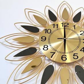Relógio de parede dourado folhas espelhadas metal 60x60 Uma coleção luxuosa de relógios em metal dourado