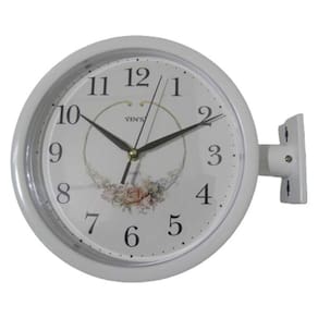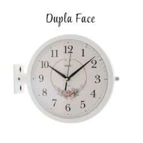 RELOGIO DE PAREDE DUPLA FACE VINTAGEDecore seu quarto, sala, comércio ou escritório com este lindo relógio de parede dupla face estilo vintage. O produto é ideal para acrescentar um estilo retrô a qualquer ambiente, além de ser uma ótima opção de presente para alguém querido. O relógio de parede possui visor analógico de portal dupla face, possibilitando que você confira as horas em ambos os lados. Ele pode ser fixado em paredes ou portas com o auxílio de pregos/parafusos (pregos e parafusos não inclusos).Este produto funciona com 1 pilha AA 1.5V (pilha não inclusa).Atenção: Produto não acompanha pilha.Atenção: Produto não acompanha pregos e parafusos para fixação.Características do Produto:Cor: BranoTipo: Analógico dupla faceMaterial: Polipropileno, poliestireno e componentes eletrônicosAlimentação: 1 pilha AA 1.5V (pilha não inclusa)Fixação: Pregos/parafusos (não inclusos)Conteúdo da Embalagem:1 relógio de parede dupla face BRANCODimensões Aproximadas do Relógio:Altura: 26 cmLargura: 26 cmComprimento: 9 cmCircunferência: 83 cmDimensões Aproximadas do Conector de Parede:Altura: 10 cmLargura: 6 cmComprimento: 6 cm3 meses de garantia contra defeitos de fabricaçãoPeso:786 g